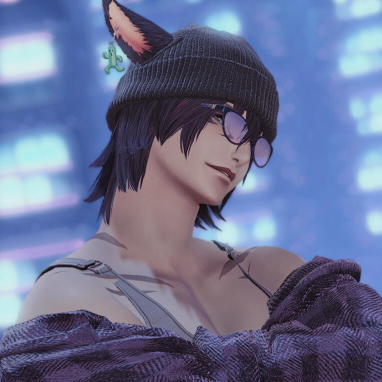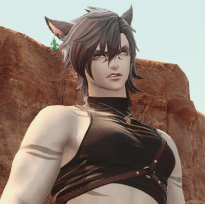 Personality and some more info:Chi'yo is grumpy, impatient and short-tempered. He's the type to punch first and ask questions later. He hates being lied to or played around with - explaining things to him has to be short and straight to the point.He doesn't like people who are pompous or overly smug and never holds back at clapping back whenever someone tries to sass him. He also really doesn't like people, who are overly clingy and don't respect personal boundaries.He gets easily flustered and pouty whenever someone compliments him or when flirted with. He won't say it out loud, but seeing him as an authority and looking up to him will make him feel giddy inside. Despite being grumpy and hard to approach, he can be really affectionate to those he cares about.He has a strange obsession with anything Paissa-themed. Not to the point of putting it all over his house, but he still loves being gifted objects inspired by this silly creature.A "short" history:Chi'yo was born as Chi'a to a Keeper couple from Black Shroud. His mother - Chi Maimhov - was one of the best rogue poachers in the forests and naturally had just as many enemies as allies, even among her own family.