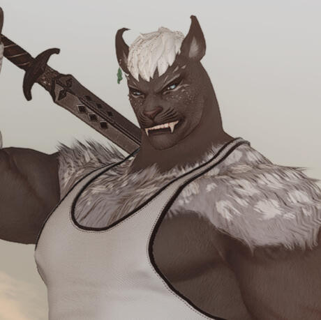 Personality and some more info:Rico is brash and likes to run head-first into trouble, confident in his abilities to get out of anything unscathed. He often had to get pulled out from the battlefield by his older colleagues, barely surviving. He is tough, though, and determined to push through at all cost.He has a bit of a complex with his height and often gets frustrated if reminded of it. He's on the smaller size for a Hrothgar and other soldiers in Bozja often teased him about it. Eventually, he figured out other advantages to his stature and learned how to be swift in combat.Rico spent most of his life in occupied Bozja and doesn't know many of the races, cultures and norms in Eorzea. He has a poor habit of calling Lalafell "dinner" and picking on non-Hrothgar races for being different, but always gets scolded by Lovro and the other fellow company members for that.In general, Rico has a bit of a difficult relationship with the members of the "Cucumber Family". He regularly picks fights with Chi'yo and bullies Faar out of jealousy over how close she's been with Lovro. Viri might've stabbed him a few times as a warning, just because of Rico's attitude towards the short Lalafellin race.
