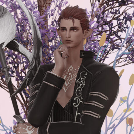 In fear of having his family banished from the Black Shroud and punished by the Elementals, Ursulin snapped and completely destroyed Gaspard with his twisted magic.Terrified, but also oddly thrilled about what he's done, Ursulin made a difficult decision to spare his parents more hate and banishment from their home. He ran away as far as his legs could carry him, with only what he had on him at that time. He managed to cross the border to Gyr Abania and hide there, knowing stepping back into the Twelveswood and Gridania would bring the wrath of the Elementals upon him.Ursulin found himself in the middle of a land consumed by a brutal civil war. He joined a small group of rebels and helped in the war efforts as a healer. He found his home in Ala Mhigo and stayed there for many years, using his strange amalgamation of White and Black Magic to aid the people who accepted him without question. During his life there, Ursulin's Echo awakened and brought a lot of confusion to this already traumatized man.Many years later, when Eorzean forces finally decided to join and help with the liberation of Ala Mhigo, Ursulin met not only the Scions, but also a group of adventurers led by a Wildwood woman - Cevilia. She found out about his "strange visions" from Conrad and offered him to join her Company, trying to explain the Echo to him as well. Ursulin continuously refused - both out of his resentment for Wildwood Elezen and his loyalty to Gyr Abania. Only after the war was over and Ala Mhigo was finally liberated, Ursulin mysteriously vanished from Rhalgr's Reach and found his way to Cevilia's Company with many questions.Relationships: